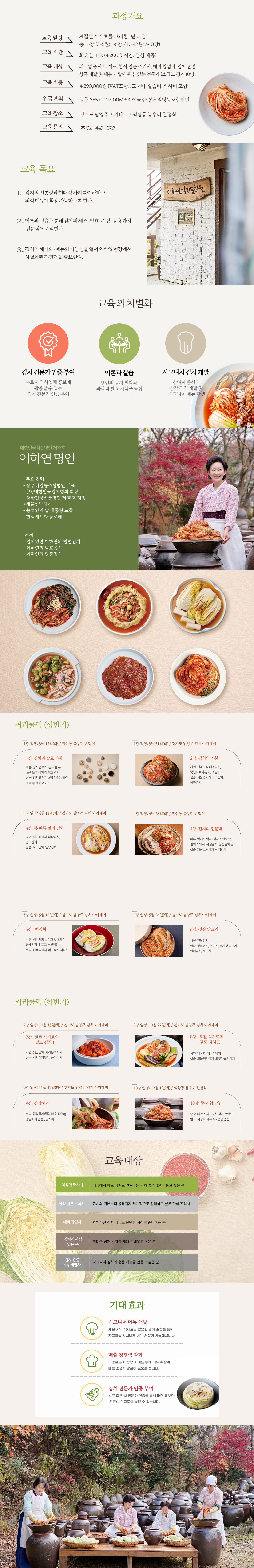 ■ 교육대상 : 외식업 종사자, 셰프, 한식 전문 요리사, 예비 창업자, 김치에 관심있는 분, 김치관련 메뉴에 관심이 있는 전문가